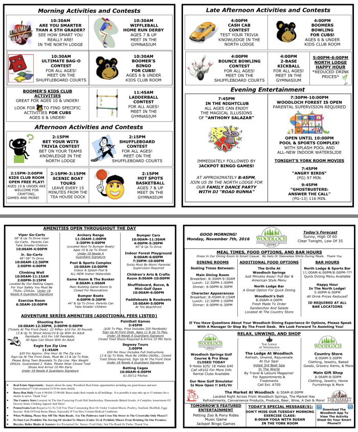 Daily Adventures: Woodloch Activity Sheet | Woodloch Resort