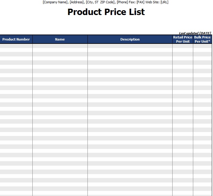 Microsoft Office Price List Template